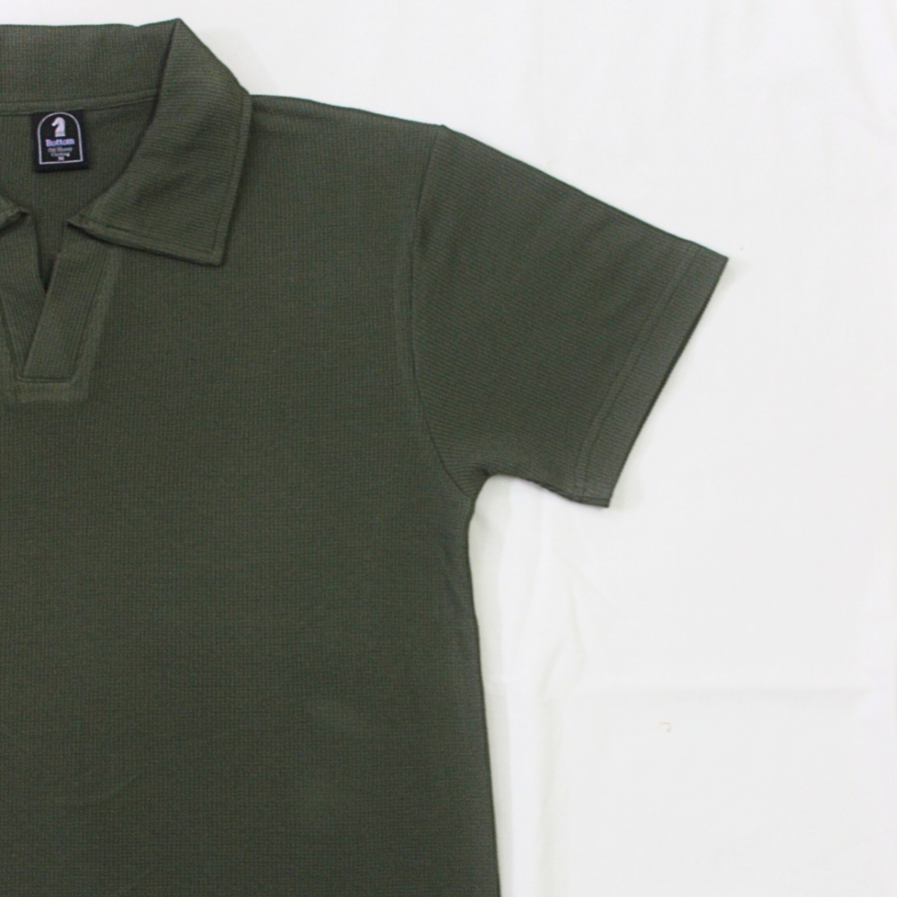 Design details: Waffle knit texture polo shirt, open collar